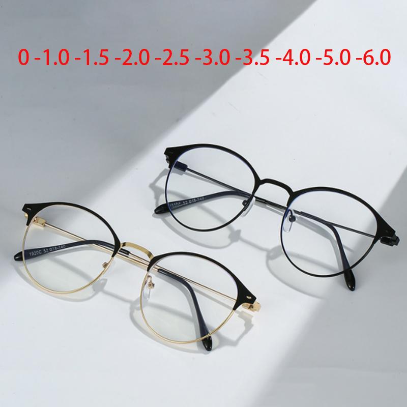 Metall Großen Rahmen Runde Korrekturbrille Mit Astigmatismus Anti Blau Licht Student Kurzsichtig Brille 0 -0,5 -0,75 Zu -4 cm