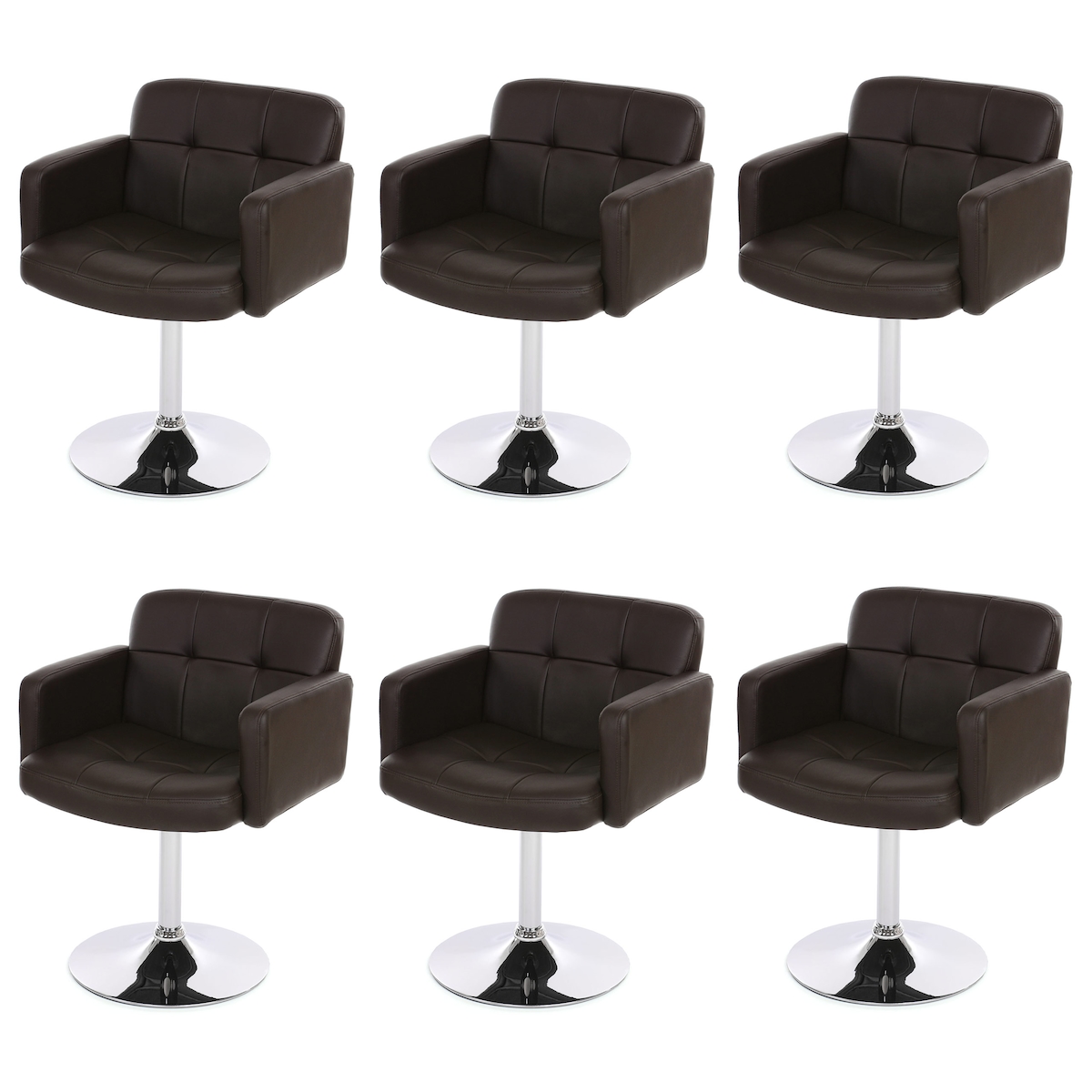 Mendler 6er-Set Esszimmerstuhl Orlando, Küchenstuhl Drehstuhl Stuhl, Kunstleder Chrom MVG-zertifiziert ~ braun