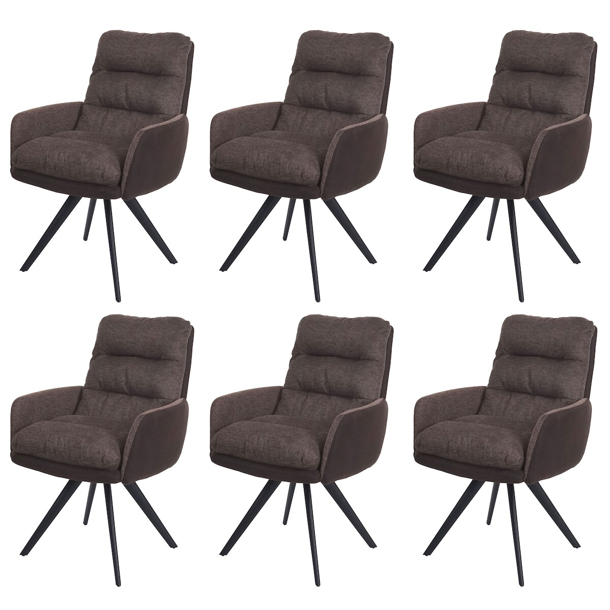 Mendler 6er-Set Esszimmerstuhl HWC-G66, Küchenstuhl Stuhl, drehbar Auto-Position Stoff MVG ~ braun-dunkelbraun, mit Armlehne