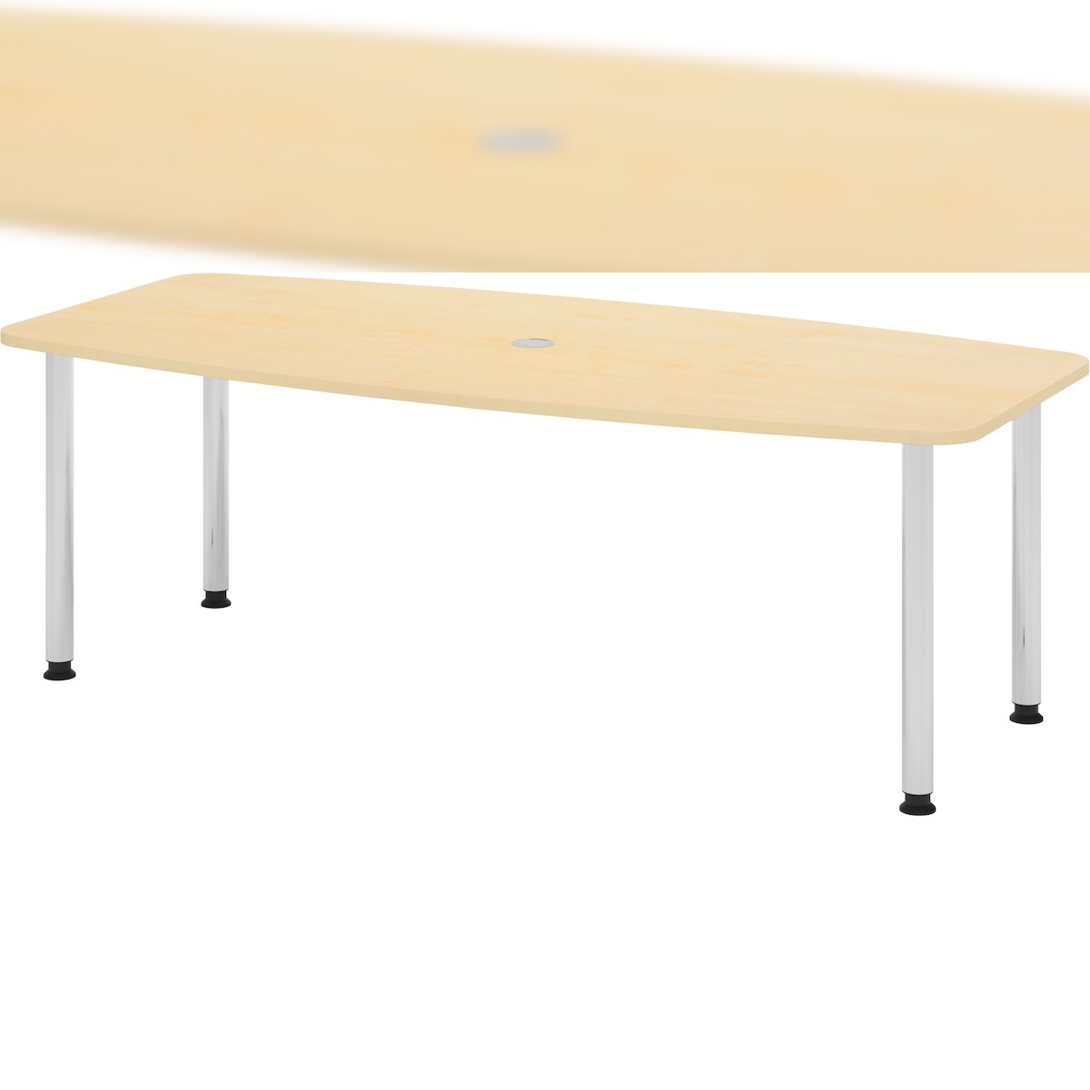 bümö Konferenztisch oval 220x103 cm großer Besprechungstisch in Eiche, Besprechungstisch mit Gestell in Silber, Meetingtisch für 8 Personen, XL-Tisch