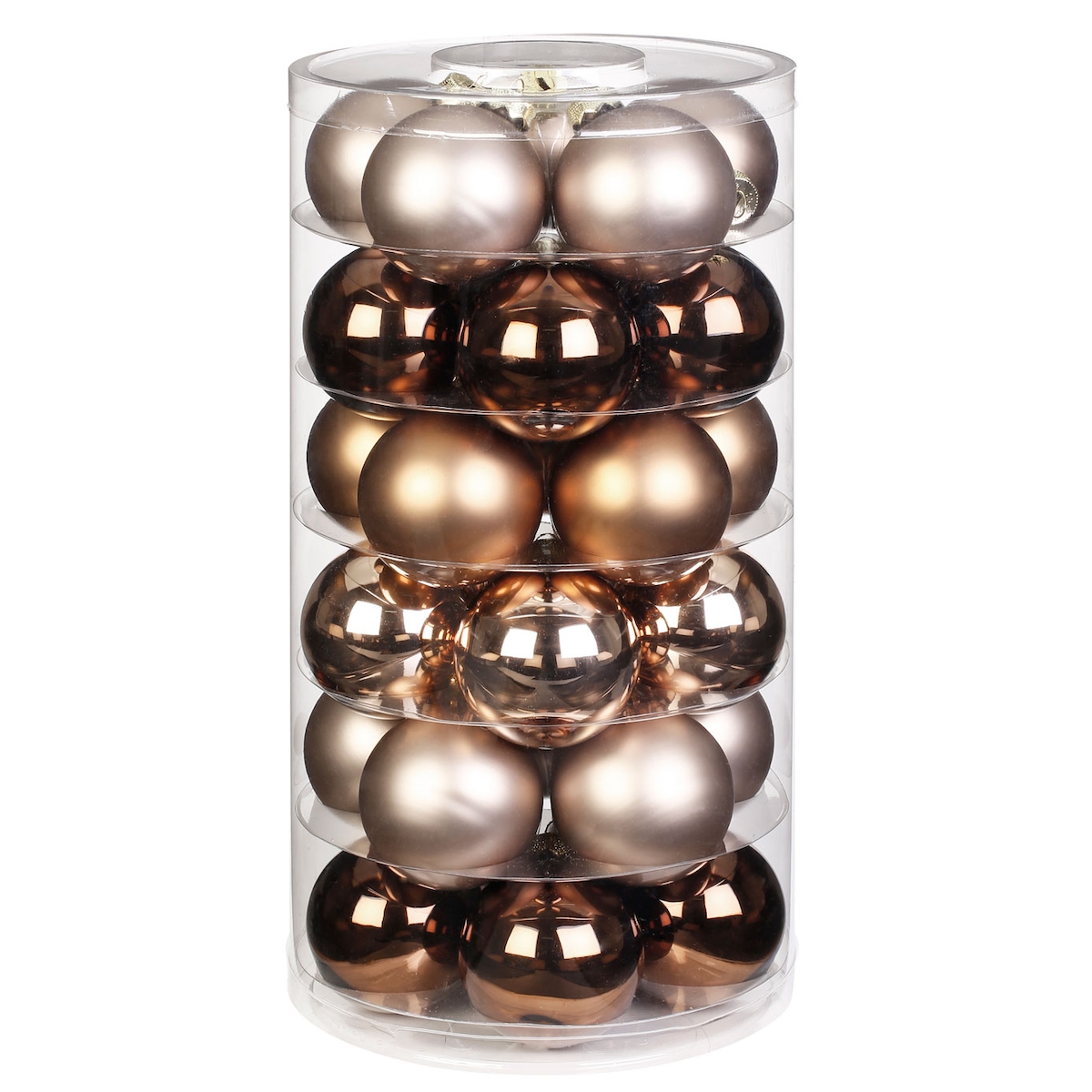 30 Weihnachtskugeln 6cm Glas Christbaumkugeln Weihnachtsbaumkugeln braun beige