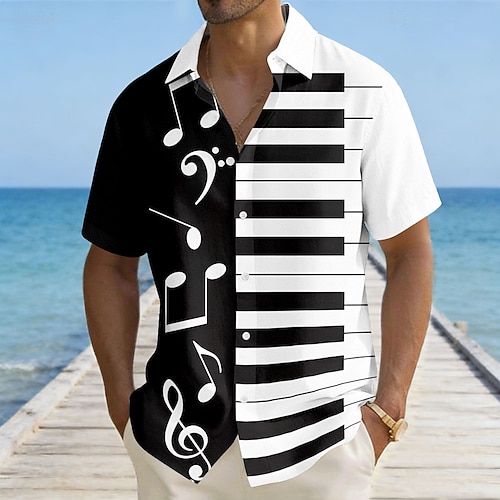Per uomo Maestri del Consiglio Pianoforte Strumento musicale Camicia Camicia Estiva Camicia con Bottoni Manica Corta Moda Casual All'aperto Vacanza Abbigliamento Quotidiano Estate Primavera Collo