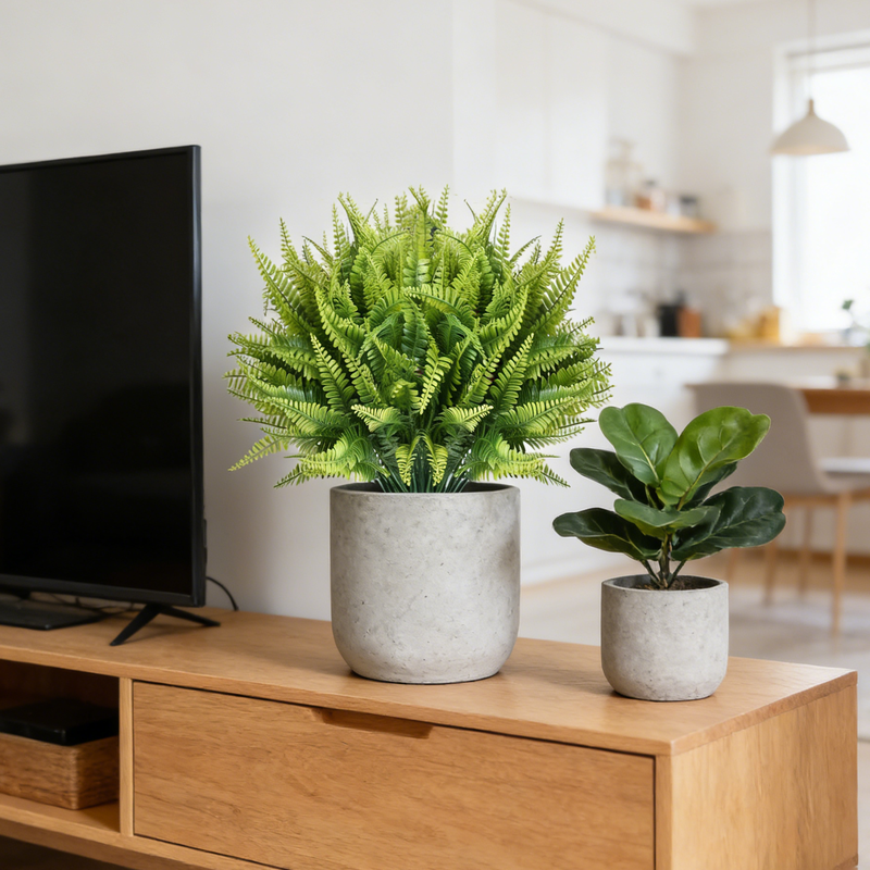 Yuejia 10Pcs 16in/41cmArtificial Boston Fern Plants Fake Boston Fern Stems Faux Plants Artificial Outdoor Plastic Bushes Bulk for Hanging Office Porch Window Home Decor