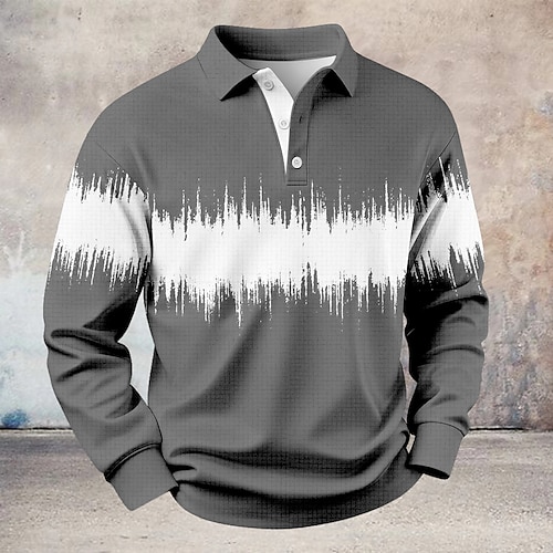 Per uomo Magliette Polo a Nido d'Ape Polo con zip Polo da Golf Manica Lunga Magliette polo Con cerniera Vintage Casual Quotidiano 3D Stampato Autunno Inverno Nero Bianco Vino