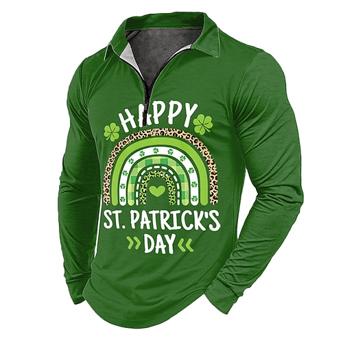 Per uomo Stampa Lettere Polo con zip Maglia da golf Manica Lunga Magliette polo Camicie con Colletto Vintage Casual All'aperto Streetwear Abbigliamento Quotidiano Stampa 3D Polo con cerniera a un