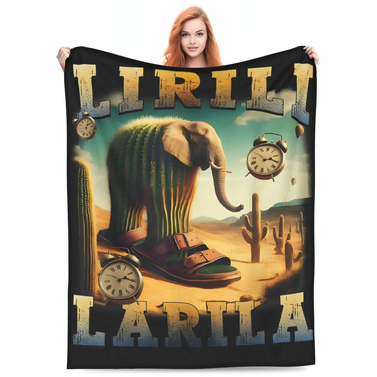 Lirili Larila Funny Italian Brainrot Meme Cactus Elephant Super Warm Blanket Travel Plush Throw Flannel Bedspread Sofa Bed Cover
