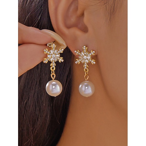orecchini da donna a forma di fiocco di neve natalizio: materiali in lega e perle sintetiche, pietre festive rosse, verdi e trasparenti, perfetti per feste e regali