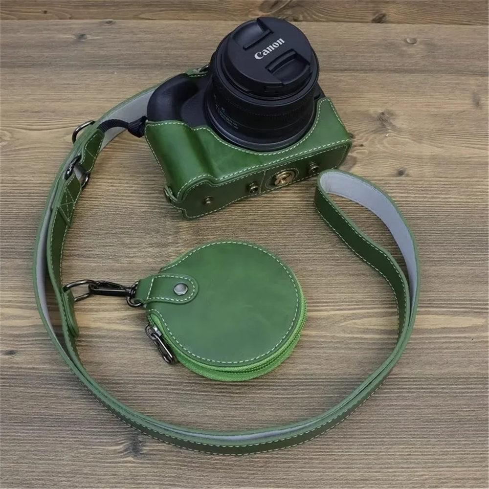 Kameratasche aus PU-Leder für Canon EOS R50 R100 18-45mm 18-55mm Objektiv mit Tragegurt und Mini-Etui
