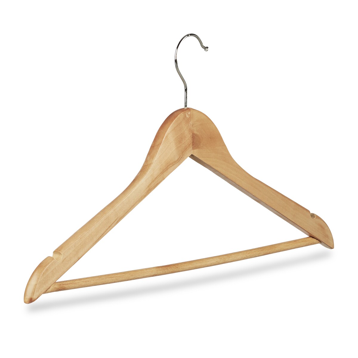 Relaxdays Kleiderbügel Set, 12 Hosenbügel aus Holz, Garderobenbügel, Haken 360° drehbar, HxB: 22,5x44,5cm, natur/silber