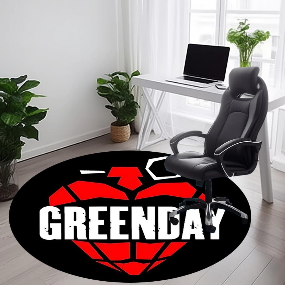 1PC Greenday Band Logo Office Round Rug - Perfect for Office or Study Decor, Machine Washable, Non-Slip Backing, Decorative Floor Mat