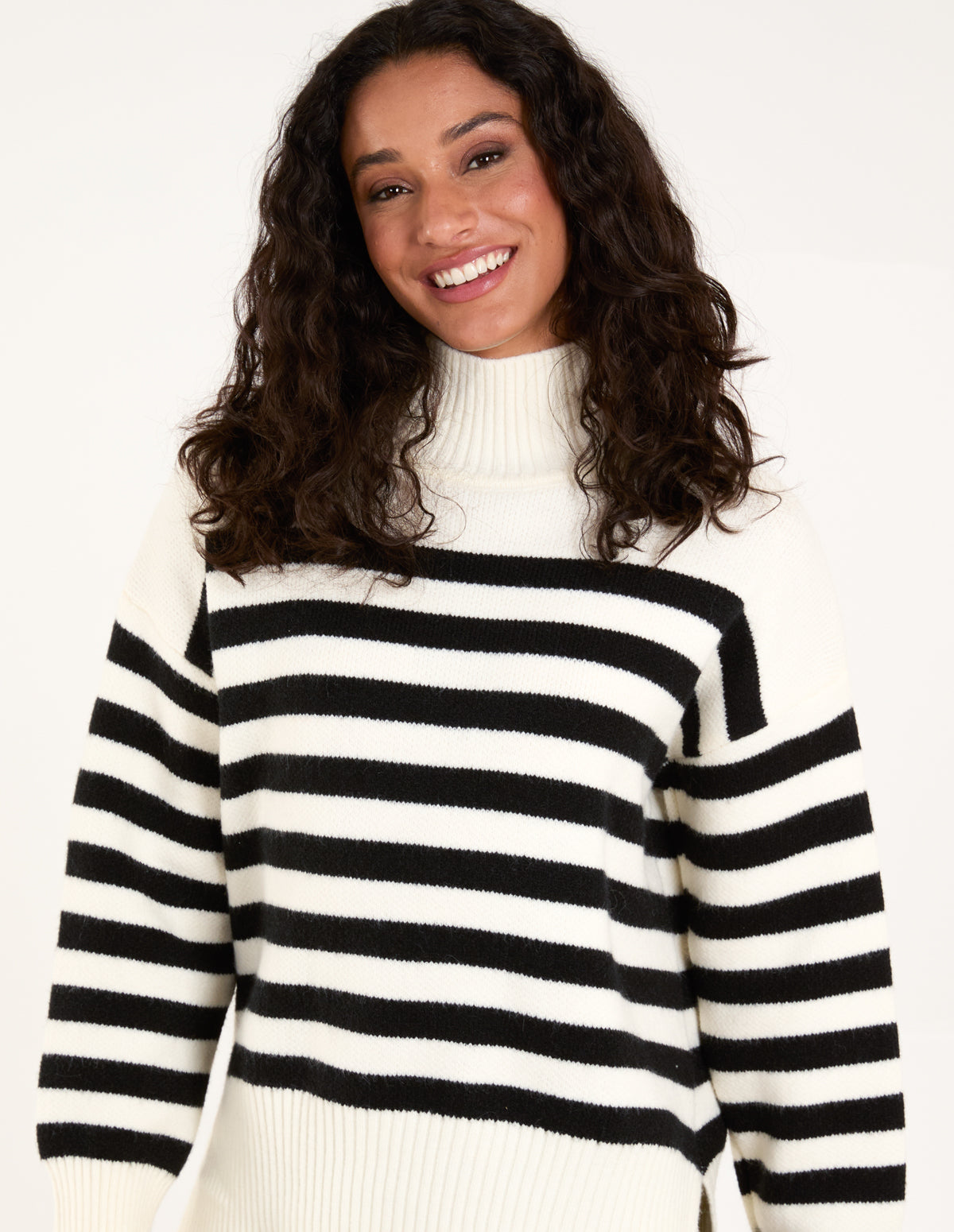 Blue Vanilla Womens High Neck Striped Jumper - Ivory - Size Small/medium | Blue Vanilla Sale | Discount Designer Brands
