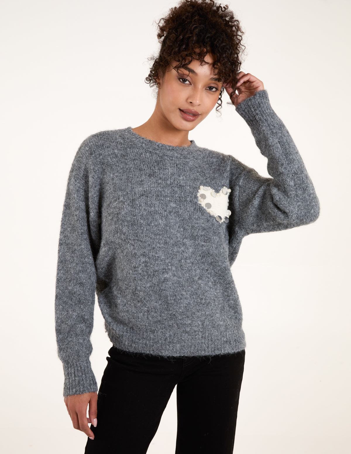 Blue Vanilla Womens Embellished Heart Knit Jumper - Dark Grey - Size Small/medium | Blue Vanilla Sale | Discount Designer Brands