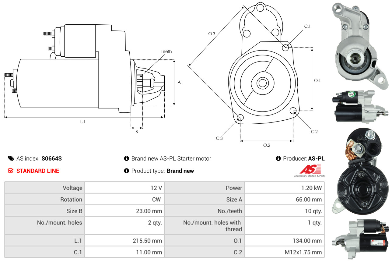 AS-PL Starter 12V für VW 06E911021B 079911021GX 079911022X S0664S