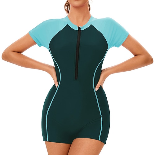 Per donna Top sottomuta Costume da bagno One Piece Patchwork Protezione UV Alta elasticità Manica Corta Costume da Bagno Con zip Surf Immersione Snorkeling Estate