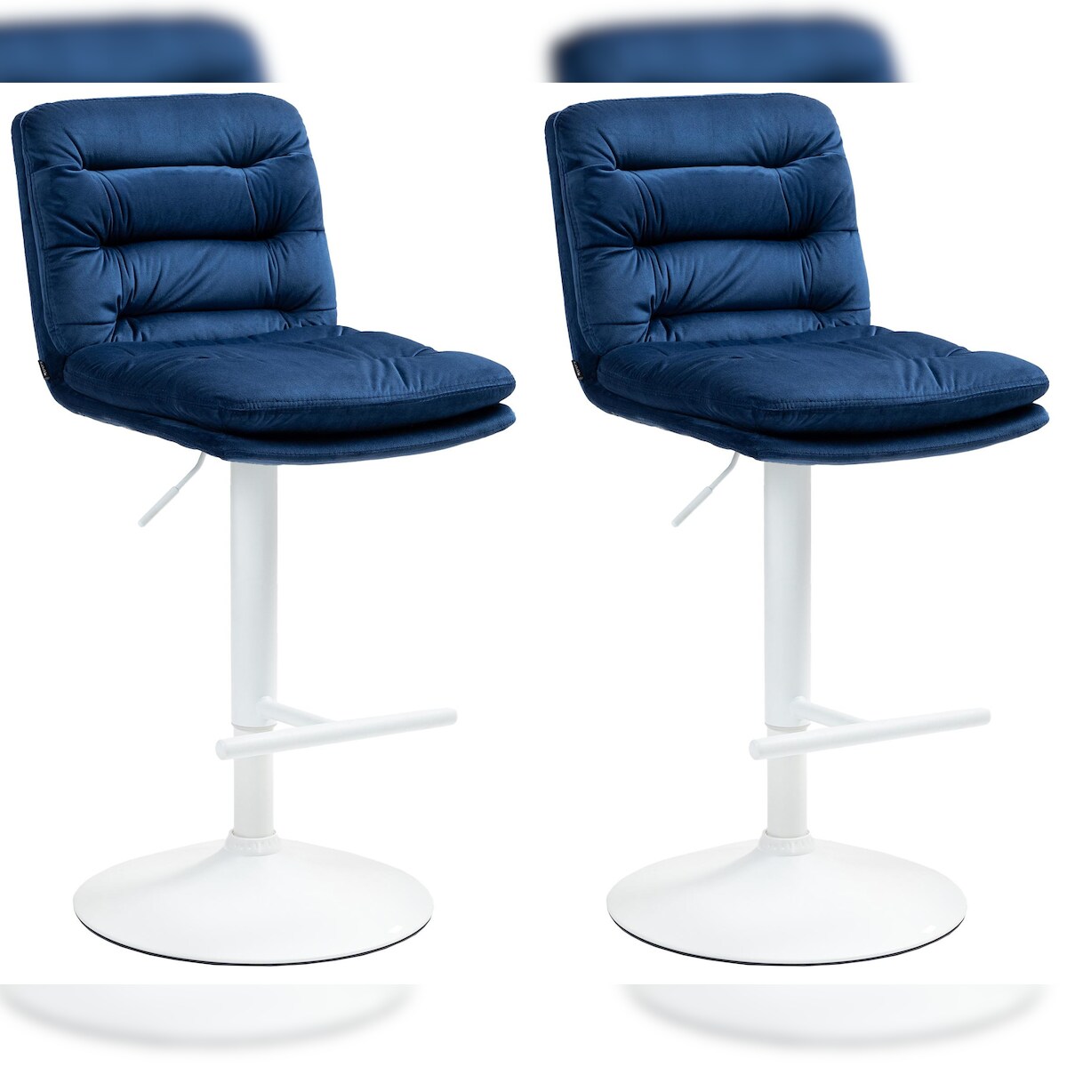 DELUKE® Barhocker 2er Set TURIN - Blau, Samt, Weiß | Barhocker mit Lehne Barstuhl Tresenhocker Tresenstuhl Kneipenhocker Kneipenstuhl
