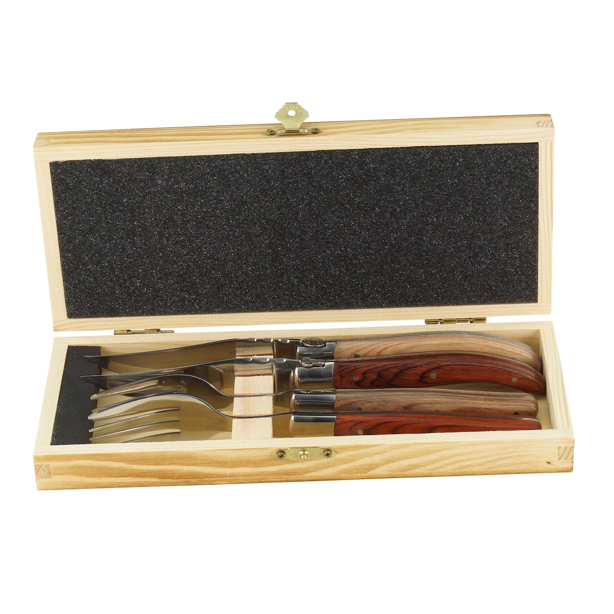 Solex Torro/BBQ Steakbesteckset mit Echtholzgriff aus Pakkaholz in einer Holzbox