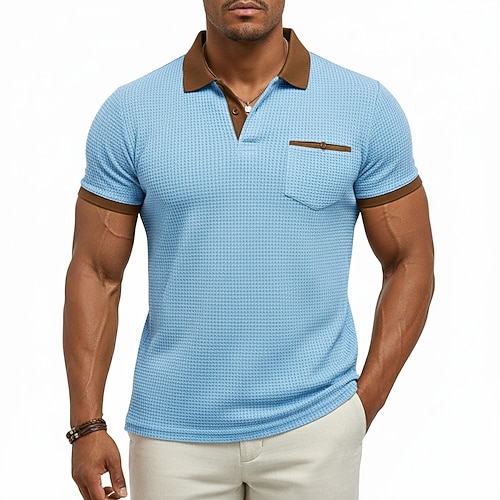 Da uomo Maglietta Maglietta a Maglia Waffle Manica Corta Girocollo Estate Primavera Tutte le stagioni Blocco di colori Moda Designer Casual Base Manica corta Casuale Quotidiano All'aperto Esercito