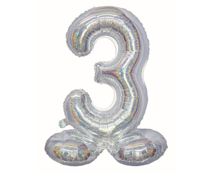 Folienballon Zahl 3 silber holografisch stehend 72 cm