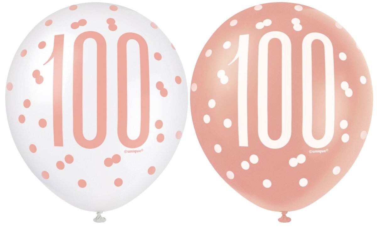 6 Luftballons roségold Zahl 100