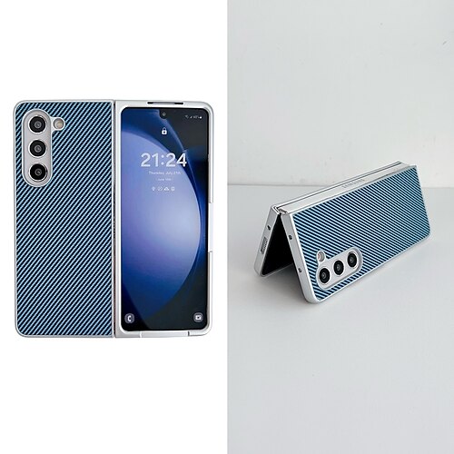 telefono Custodia Per Samsung Galaxy Piegatura a Z 7 Z Fold 6 Z Fold 5 Z Fold 4 Z Fold 3 Custodia a Flip con Supporto Protezione Completa Supporta la Ricarica Wireless Fibra di carbonio