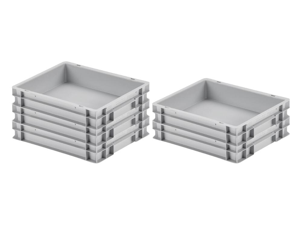 PROREGAL 5x Eurobehälter mit geschlossenem Griff | HxBxT 7,5x30x40cm | 9 Liter | Grau | Eurobox, Transportbox, Transportbehälter