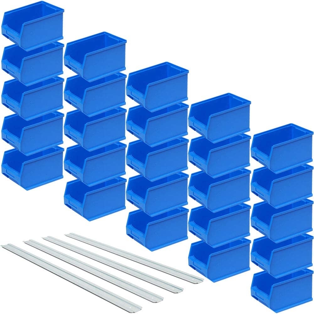 BRB 25 Sichtlagerboxen LB4, blau, Inhalt 2,9 Liter, LxBxH 235 x 145 x 125 mm, inkl. 4 verzinkte Wand-Aufhängeschienen L 970 mm