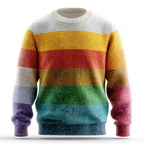 Per uomo Blocco di colori Strisce verticali Maglione Maglieria Girocollo Casual Vacanza Quotidiano Stampa 3D Tenere al caldo Manica Lunga Primavera Autunno Inverno Multicolore a Multicolore B Multi