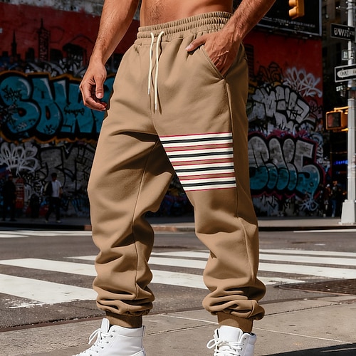 Per uomo Pantaloni da tuta Pantaloni in Pile Joggers Pantaloni Pantaloni invernali Coulisse Tasca Elastico in vita A righe Comodità Caldo Lunghezza al ginocchio All'aperto Quotidiano Ferie Vacanza