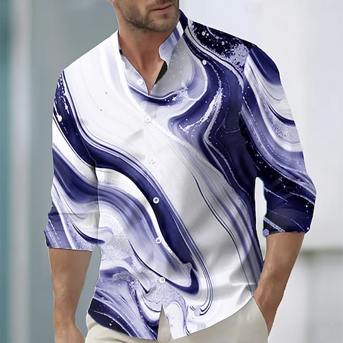 Per uomo Geometrico Marmo Arte liquida astratta Camicia Camicia con colletto alla coreana Manica Lunga Moda Casual Abbigliamento Quotidiano Ferie Primavera Autunno Collo alla coreana Colletto alla