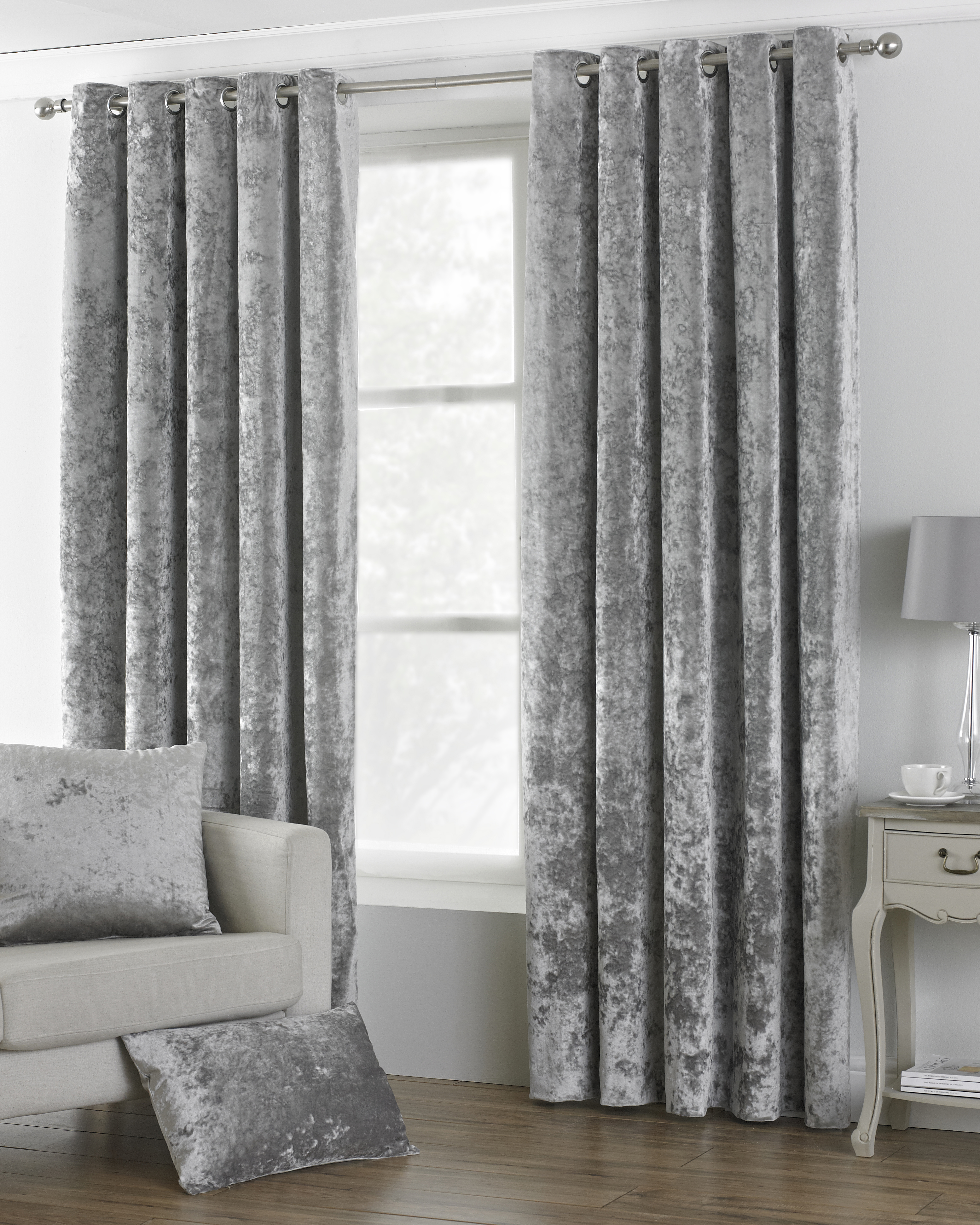 Paoletti Verona Crushed Velvet Look Eyelet Curtains in Silver - Size 168 cm x 229 cm | Paoletti Sale | Discount Designer Brands