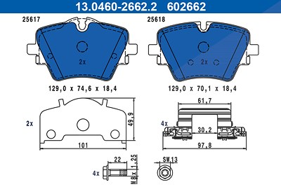 Ate Bremsbelagsatz, Scheibenbremse [Hersteller-Nr. 13.0460-2662.2] für BMW, Mini
