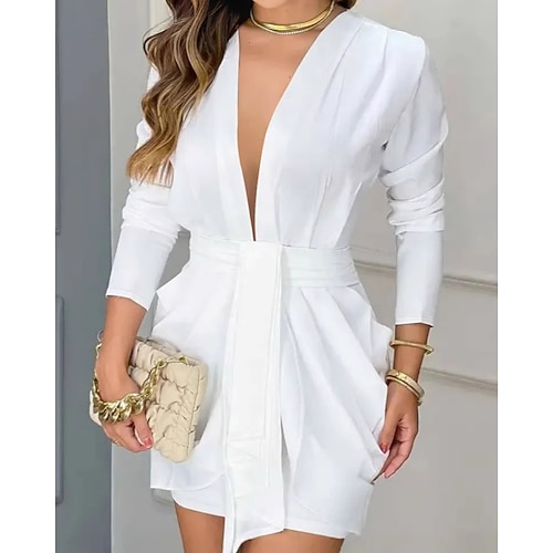 Per donna Mini Abito Abito Bianco Vestito da Festa Abito da Cocktail Abito Formale Moda Moderno Festa serale Feste Cocktail party Vestibilità comoda Semplice Manica Lunga Scollo a V Bianco Estate