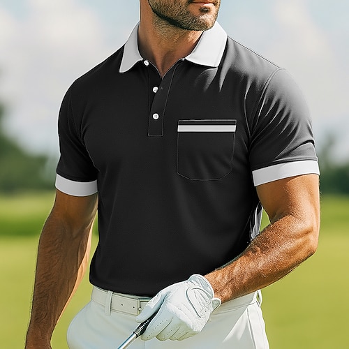 Per uomo Maglia da golf Polo Piqué Lavoro Casuale Bavero Colletto Polo a Coste Manica Corta Essenziale Moderno Blocco di colori Tasca Estate Primavera Vestibilità regolare Nero Bianco Blu chiaro Blu