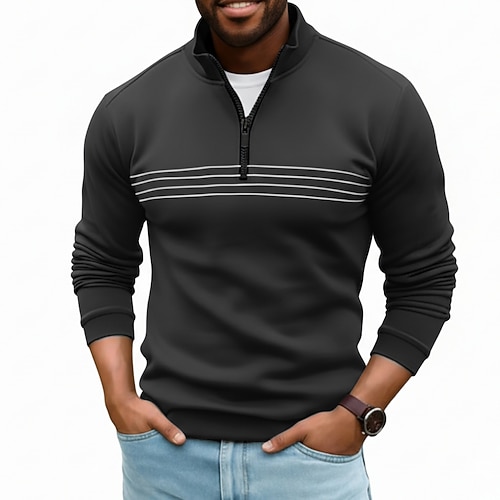 Per uomo Polo Polo con zip a un quarto Vacanza Casuale Zip a un quarto Manica Lunga Moda Confortevole A righe Con zip Primavera Autunno Tutte le stagioni Vestibilità regolare Blu marina Nero