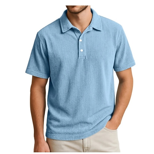Per uomo Magliette Polo a Nido d'Ape Testurizzato Casuale Ferie Bavero Colletto Polo a Coste Manica Corta Moda Essenziale Semplice Bottoni Morbido Estate Primavera Vestibilità regolare Bianco Giallo