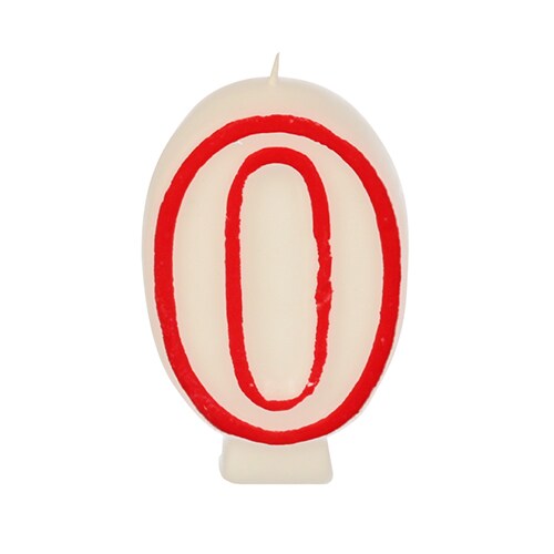 Papstar Zahlenkerze 7,3 cm weiss "0" mit rotem Rand