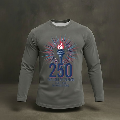 250° anniversario dell'America Per uomo Grafico Torcia Maglietta Camicia a Maniche Lunghe Manica Lunga maglietta Stampa 3D Girocollo Camicia Moda Quotidiano Essenziale Quotidiano Vacanza Streetwear