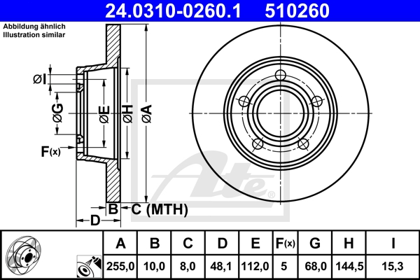 Ate Bremsensatz-Vorn Und Hinten Sg00000dx6 Bremsensatz, Scheibenbremse Vorne Rechts Links Belüftet 288mm Für Skoda Seat Peugeot Citroën Vag E172197 2q