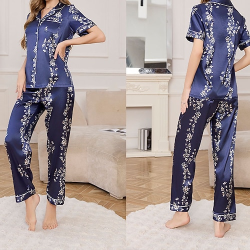 Per donna Abbigliamento da Casa Set Pigiama Moda Casual Grafico Elastico in vita Bottoni Pantalone Casa Vacanza Manica Corta Bavero Blu Nero Verde militare Verde Cachi Estate Primavera Autunno