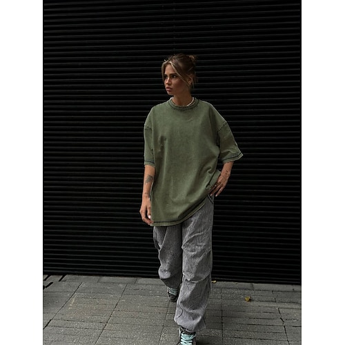 Per donna Maglietta Tinta unica Elegante Classico Casual Manica Corta Girocollo Top Regolari Quotidiano Sportivo Uscire Lavaggio vintage Blu Verde primavera Nero Verde militare Viola Estate Primavera