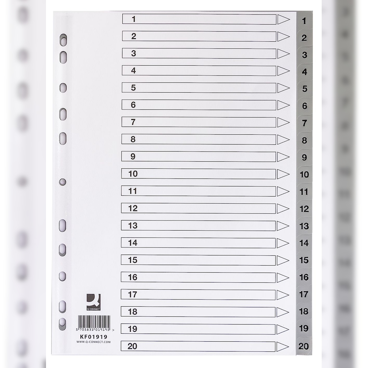 Q-Connect® KF01919 Zahlenregister - 1 - 20, PP, A4, 20 Blatt + Indexblatt, grau