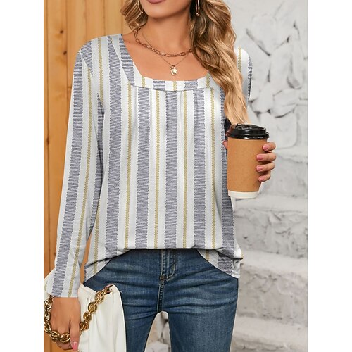 Per donna Blusa Paisley A righe Elegante Casual Manica Lunga Collo quadrato Top Regolari Quotidiano Ferie Abbigliamento da vacanza Stampato Nero Rosa Blu Verde Grigio Primavera Autunno Inverno