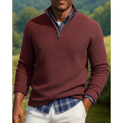 Per uomo Felpa con zip corta Manica Lunga Collo alla coreana Top Esterno Calore Termico Inverno Poliestere Nero Rosso Blu Tennis Golf Corsa
