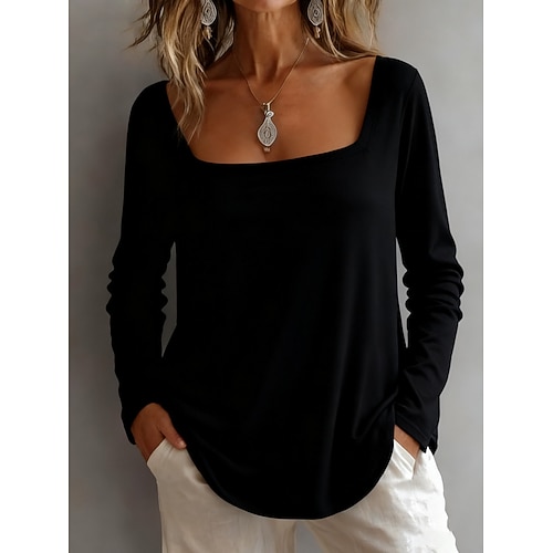 Per donna Blusa Semplice Elegante Casual Manica Lunga Girocollo Top Regolari Quotidiano Uscire Weekend Patchwork Nero Bianco Vino Blu marino Marrone Primavera