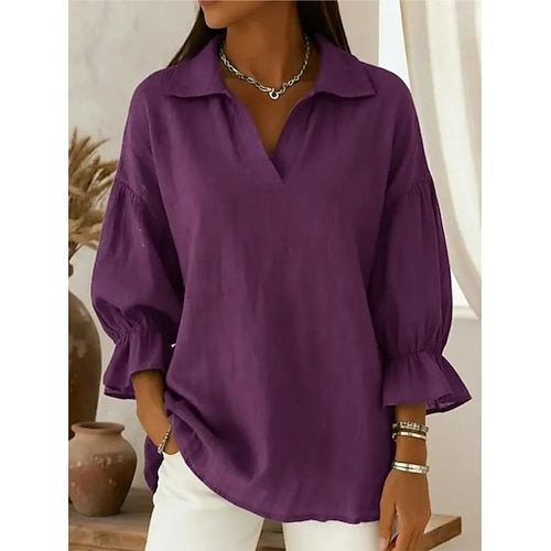 Per donna Blusa Top Eleganti Tinta unica Semplice Elegante Vintage Western Manica Lunga Colletto a Camicia Top Regolari Quotidiano Lavoro Ferie Arricciato Patchwork Bottoni Blu Nero Vino Marrone