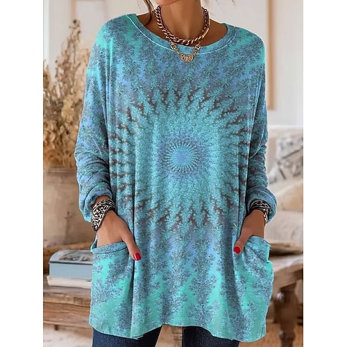 Per donna Maglietta Floreale Grafico Moda Elegante Casual Manica Lunga Girocollo Top Regolari Quotidiano Weekend Stampato Blu Viola Arancione Estate Primavera