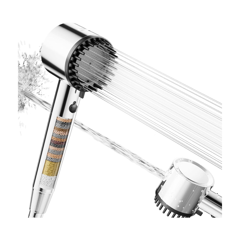 Cobbe Duschkopf mit Filter, Hochdruck Handbrause mit Filtration in 20 Schichten, 5 Strahlarten Duschbrause mit 1,5M Schlauch, Sparduschkopf Wassersparend für Hartes Wasser,Rest-Chlor,Bakterien(Chrom)