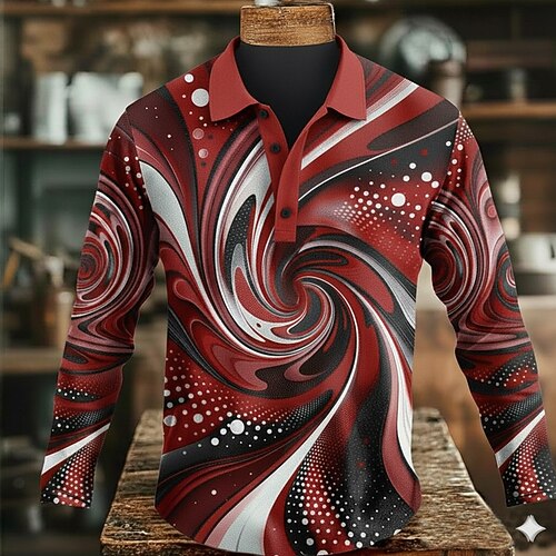 Per uomo Astratto Geometrico Polo Manica Lunga Magliette polo Bavero Casual All'aperto Streetwear Athleisure Abbigliamento quotidiano Stampa 3D Bottoni Primavera Autunno Inverno Blu Rosso Verde