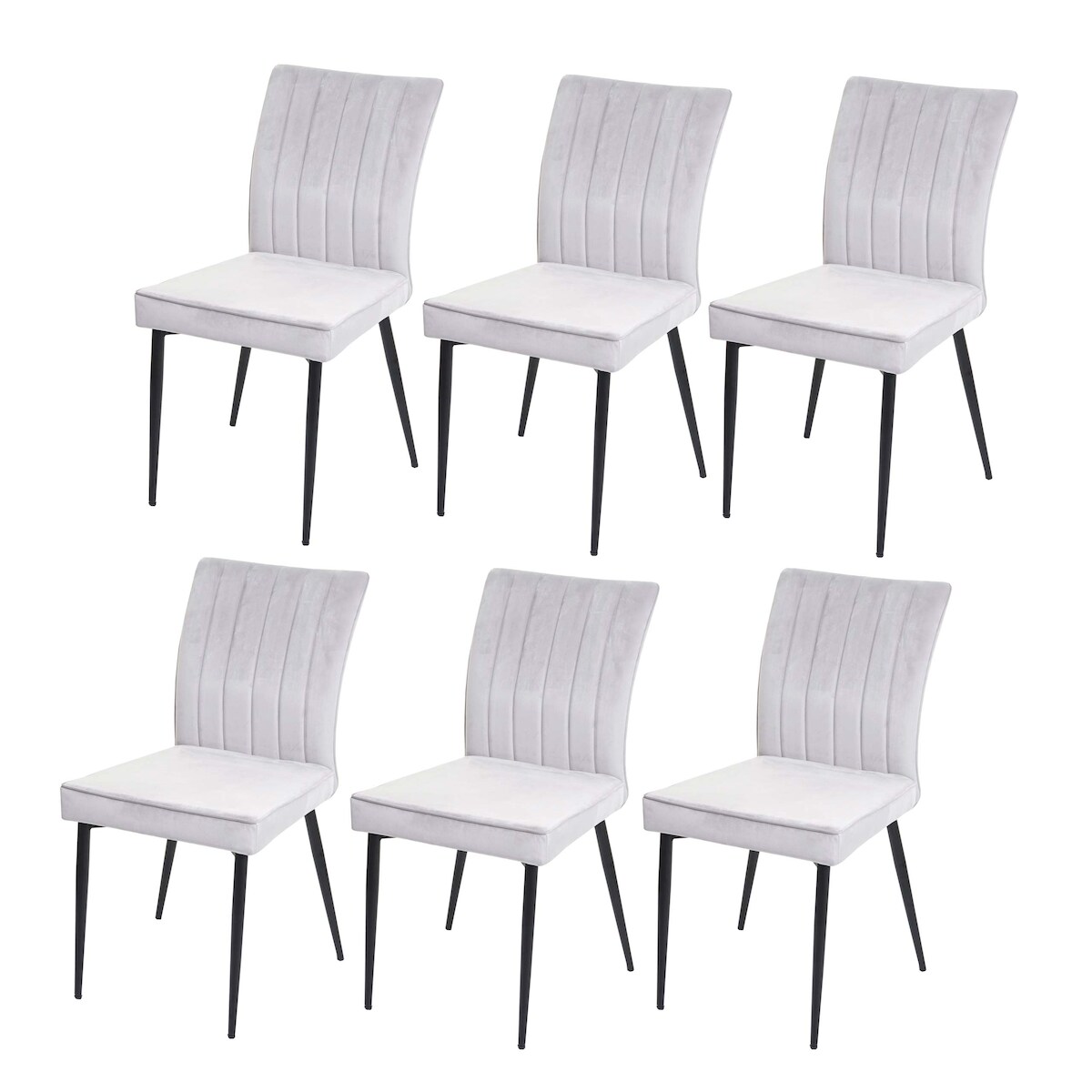 Mendler 6er-Set Esszimmerstuhl HWC-K16, Stuhl Küchenstuhl, Samt Metall ~ hellgrau