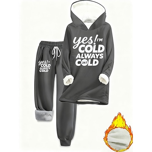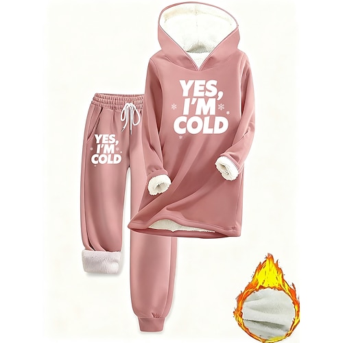 Set di pigiami da donna foderato in pile elegante caldo moda set di due pezzi tuta pantaloni maniche lunghe collo a bolla grafica con lettere stampa outdoor vacanza giornaliera nera rosa rosa scuro